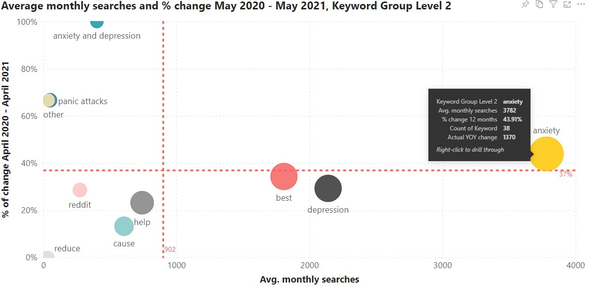 An increasing number of consumers want to hear from other consumers who have already tried probiotics. They want to see some re-assuring “evidence,” albeit anecdotal, before they commit to purchase. For instance, the phrase “probiotics cured my anxiety” experienced an astounding 414% growth year-on year (April 2020-April 2021). Platforms such as Reddit, where people can discuss sensitive topics like mental health anonymously, play an important role here.